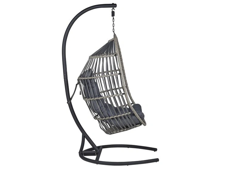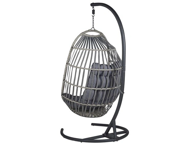 Poltrona sospesa con supporto da pavimento rattan sintetico grigio