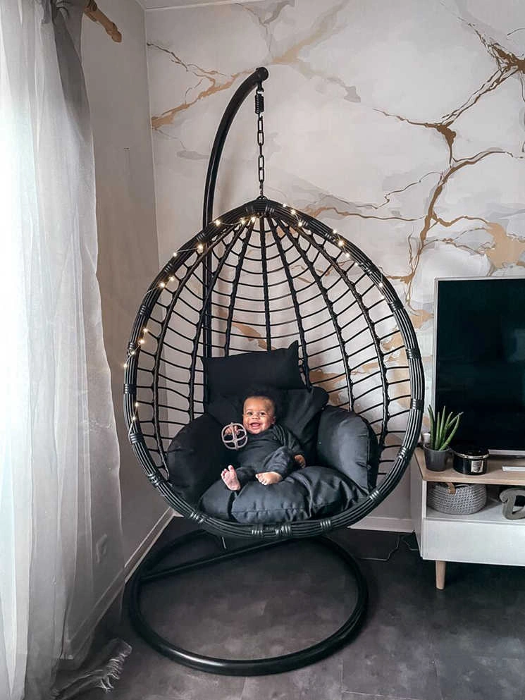 Chi ha detto che gli arredi in toni neutri, debbano necessariamente essere noiosi? Questa sedia a uovo in rattan sintetico è la prova che si può cambiare ogni stanza con un tocco di stile boho, per interni davvero moderni. I soffici ma spessi cuscini invitano alla comodità, mentre la solida struttura in metallo, la rende un arredo pensato per durare davvero a lungo.