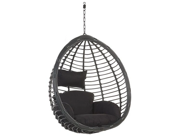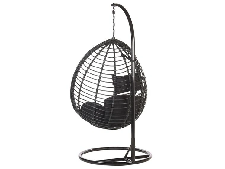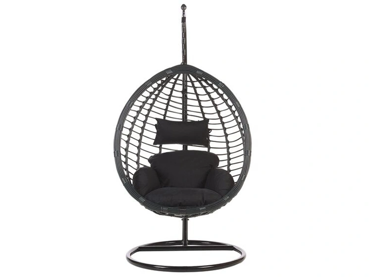 Poltrona sospesa con supporto da pavimento rattan nero