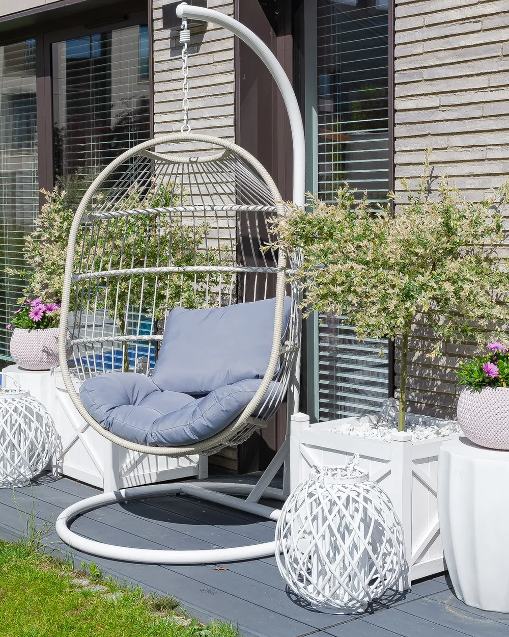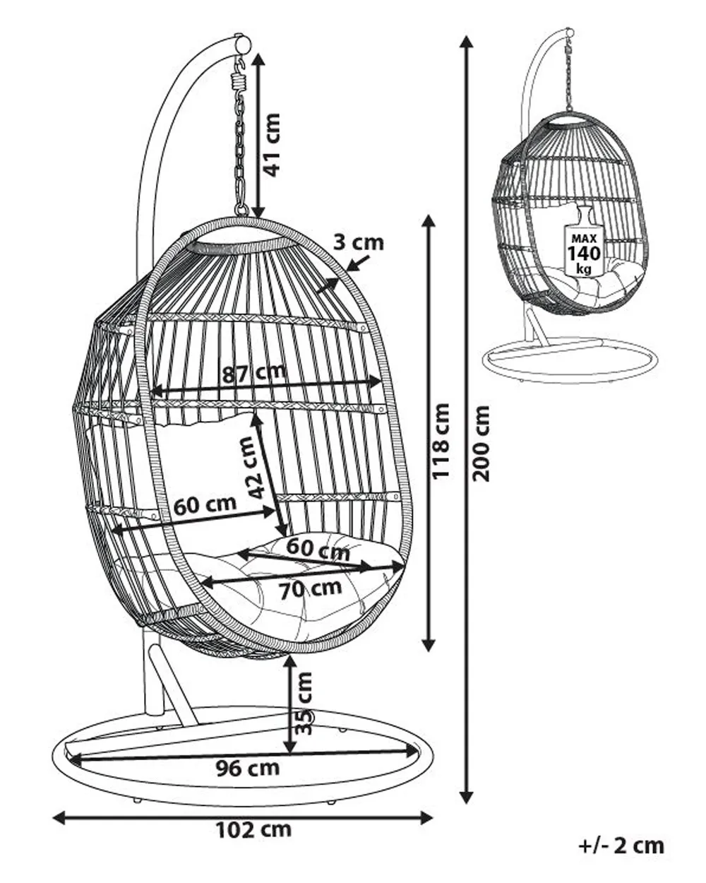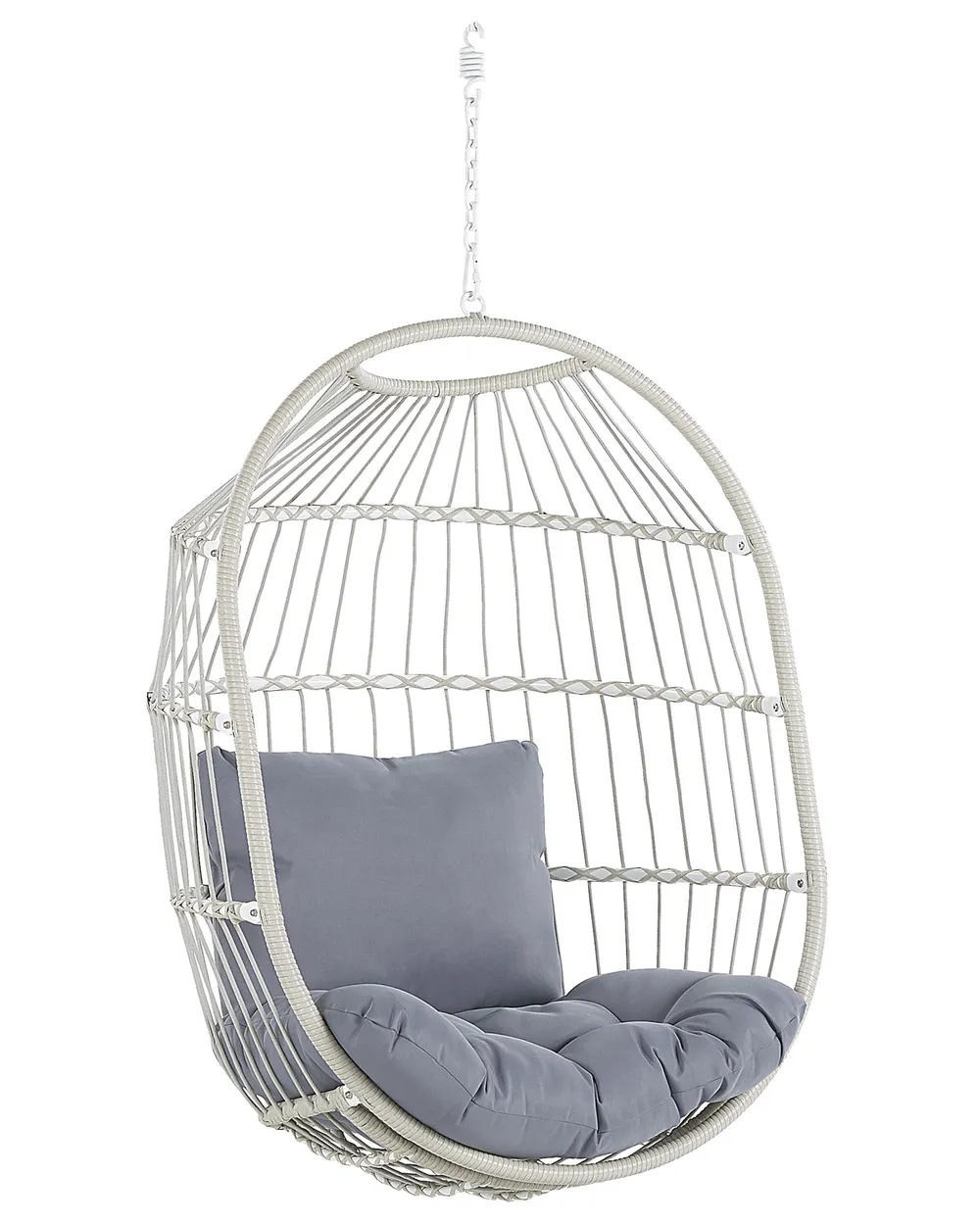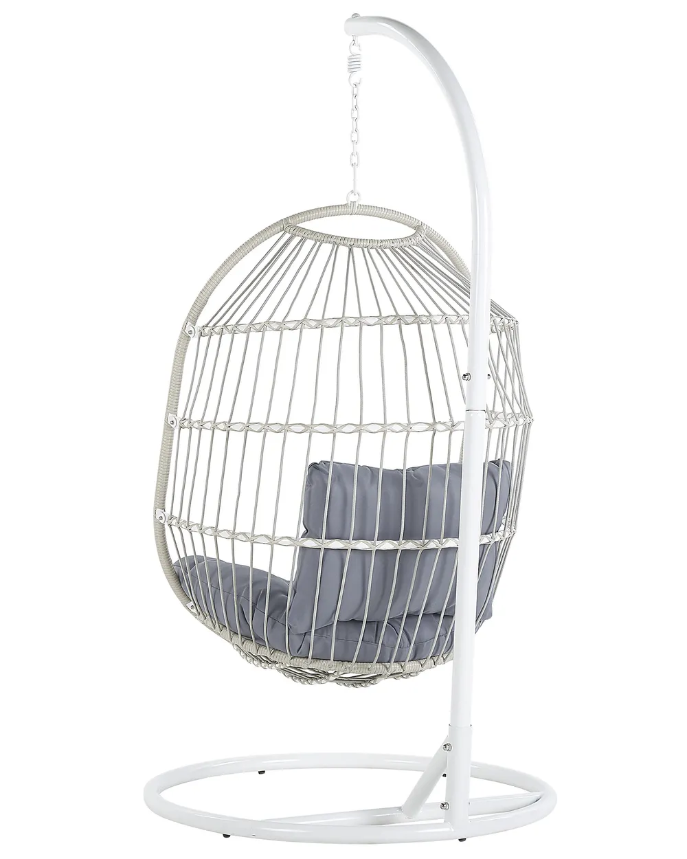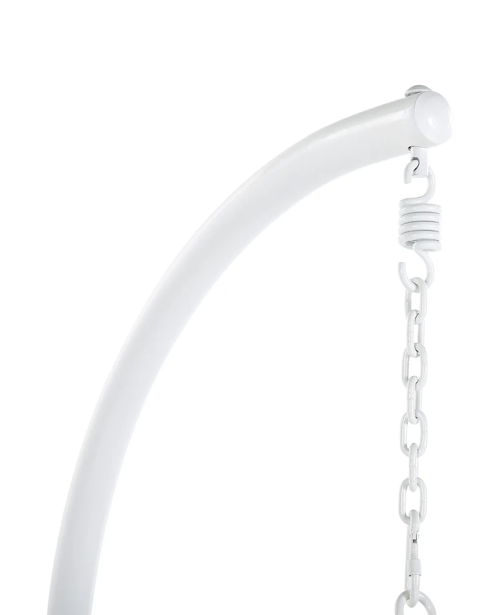 Apri le porte all'eleganza e all'originalità con questa sedia sospesa con supporto. Realizzato in poliestere di altissima qualità e caratterizzata da un design ovale è un complemento davvero di classe. Il soffice ma spesso cuscino è pensato per il massimo comfort, mentre la catena saprà cullarti, in tutta sicurezza.