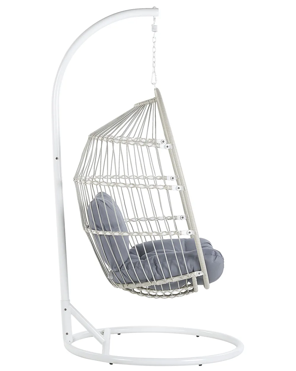 Poltrona sospesa con supporto da pavimento rattan sintetico grigio