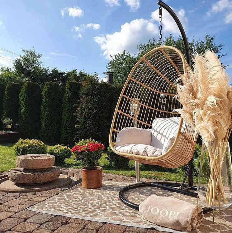 Cambia la solita poltrona con questa originale sedia a uovo. Realizzata in rattan sintetico e solido metallo di altissima qualità, è pensata per un comfort e una stabilità senza pari. Perfetta sia per ambienti interni che esterni, presenta anche soffici ma spessi cuscini generosamente imbottiti che invitano al relax.