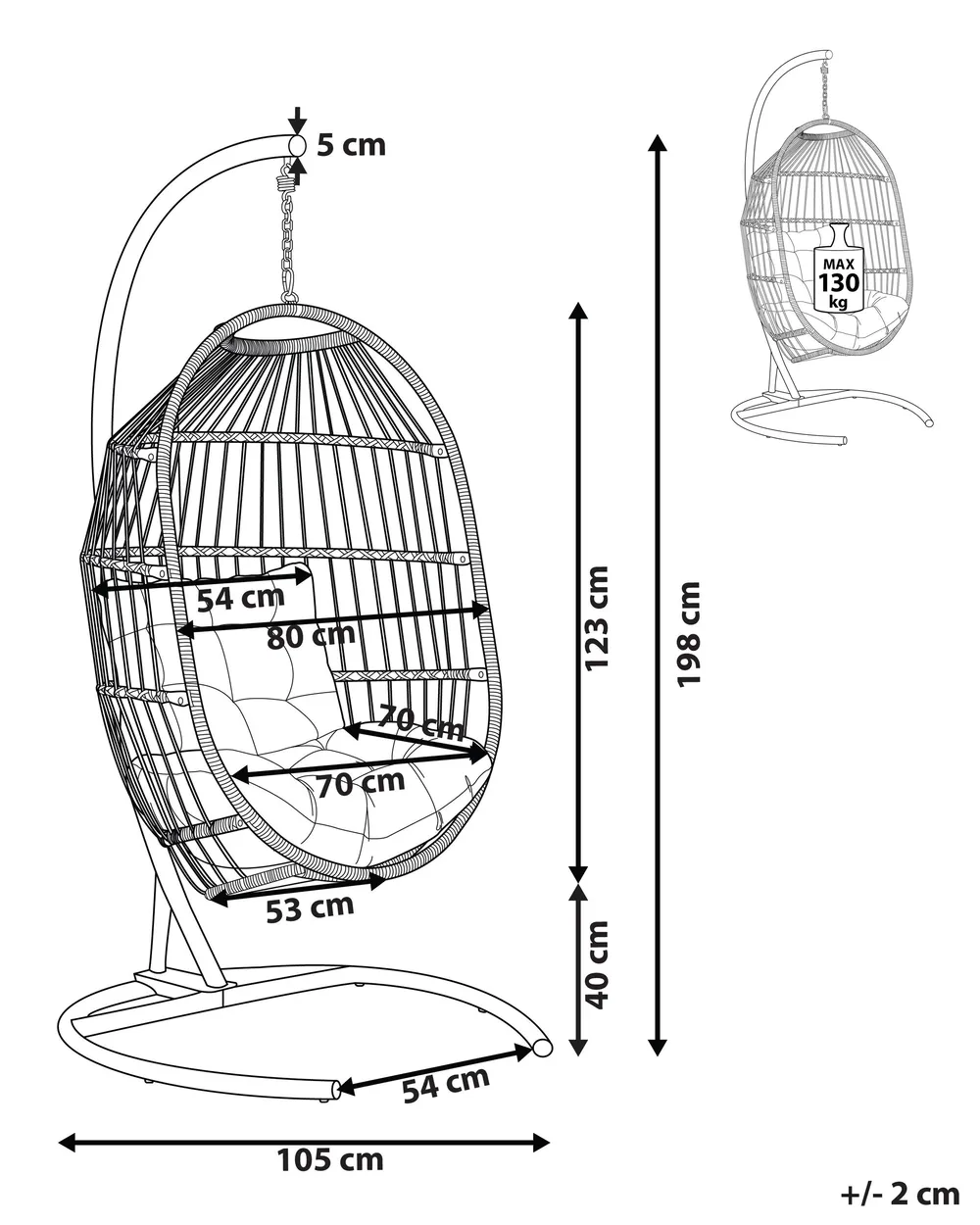 • Tipo: Poltrona sospesa con supporto da pavimento