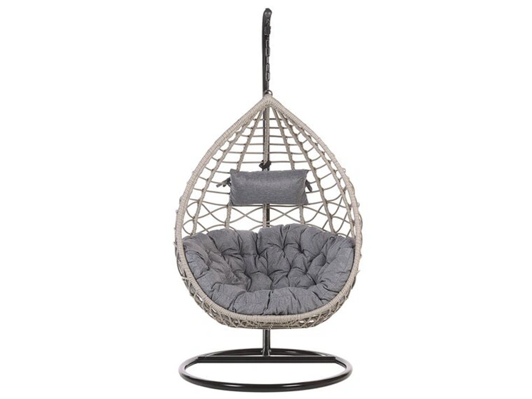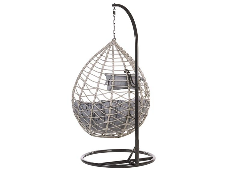 Poltrona sospesa con supporto da pavimento rattan sintetico grigio