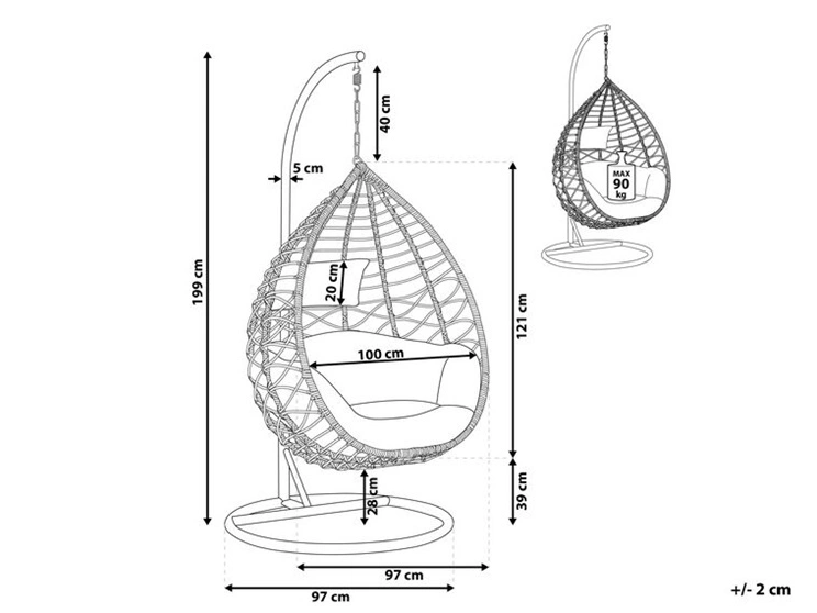 Rimpiazza una noiosa poltrona standard in soggiorno con una sospesa molto trendy. Questo tipo di poltrona, dotata di • Robusta struttura in metallo, donerà una grossa dose di glamour ai tuoi interni, senza sacrificare il comfort. Grazie alla resistenza dell'intreccio di rattan sintetico che ne caratterizza la struttura, quest'arredo può essere posizionato anche all'esterno durante una bella giornata.