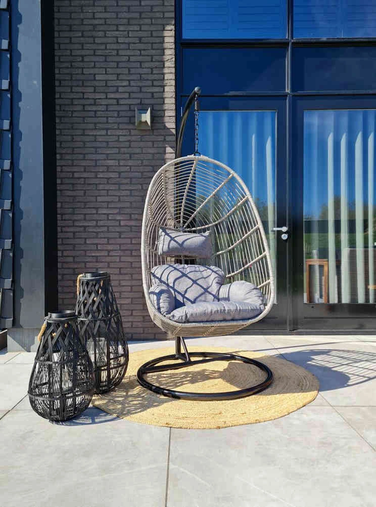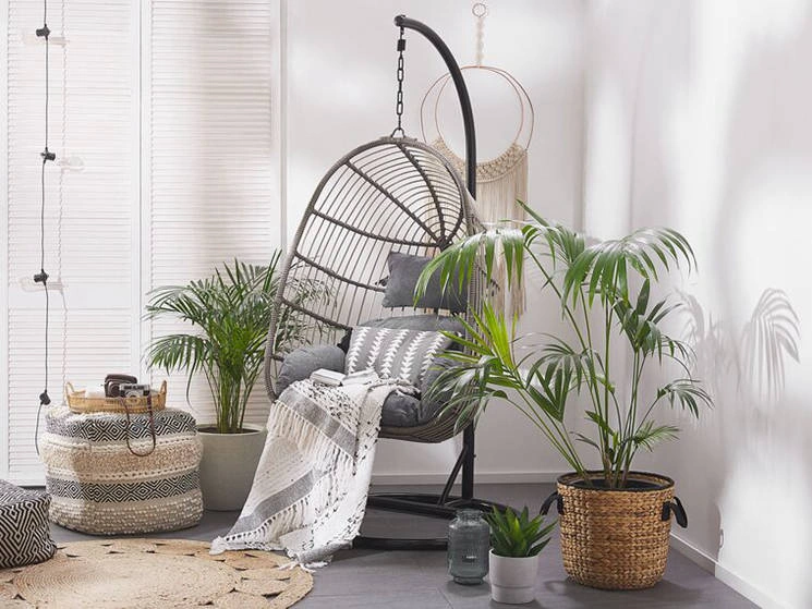 Cambia la solita poltrona con questa originale sedia a uovo. Realizzata in rattan sintetico e solido metallo di altissima qualità, è pensata per un comfort e una stabilità senza pari. Perfetta sia per ambienti interni che esterni, presenta anche soffici ma spessi cuscini generosamente imbottiti che invitano al relax.