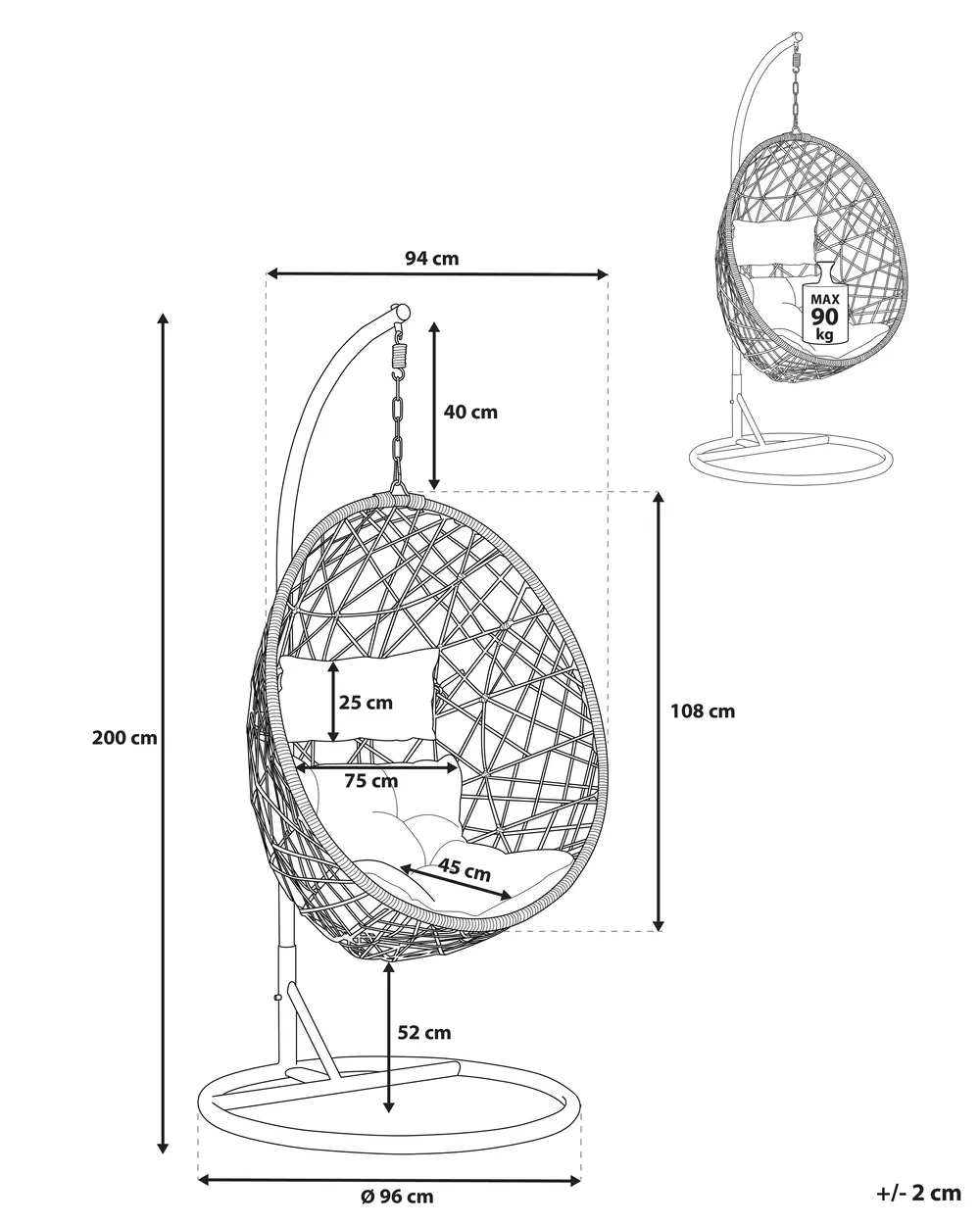• Tipo: Poltrona sospesa con supporto da pavimento