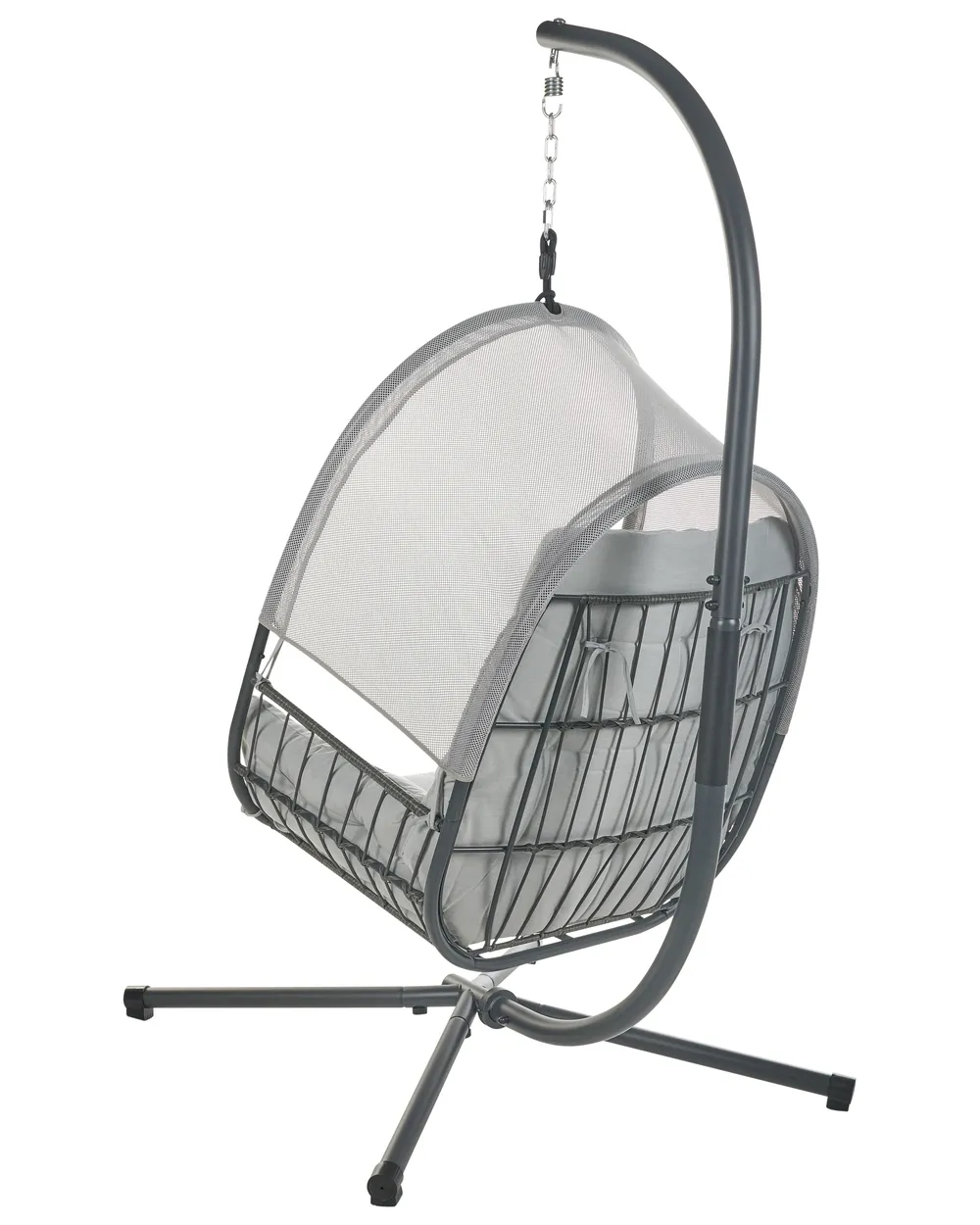 Poltrona sospesa con supporto da pavimento rattan sintetico grigio