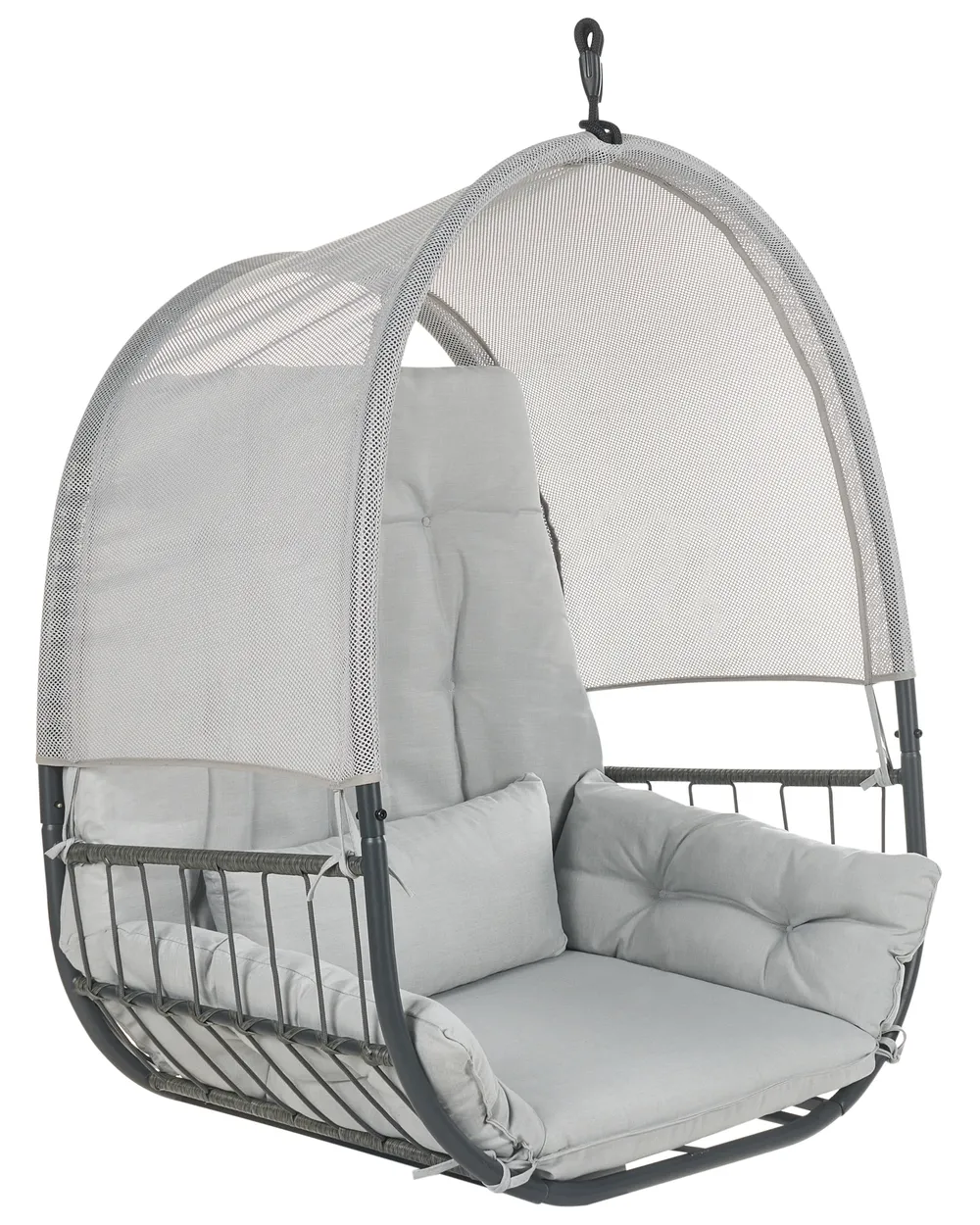 Poltrona sospesa con supporto da pavimento rattan sintetico grigio chiaro